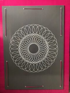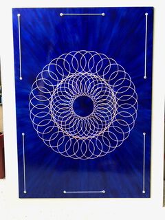 Die Bilder werden auf Malpappe gefertigt und doppelt vernietet. Dieses markante Detail ist nicht nur Handwerk, sondern Teil der Gestaltung: Die Vernietung verleiht den Arbeiten eine eigene Präsenz und macht die Verbindung von Oberfläche und Konstruktion sichtbar. So entstehen Werke, die bewusst handgemacht wirken und gerade dadurch ihren besonderen Charakter entfalten.