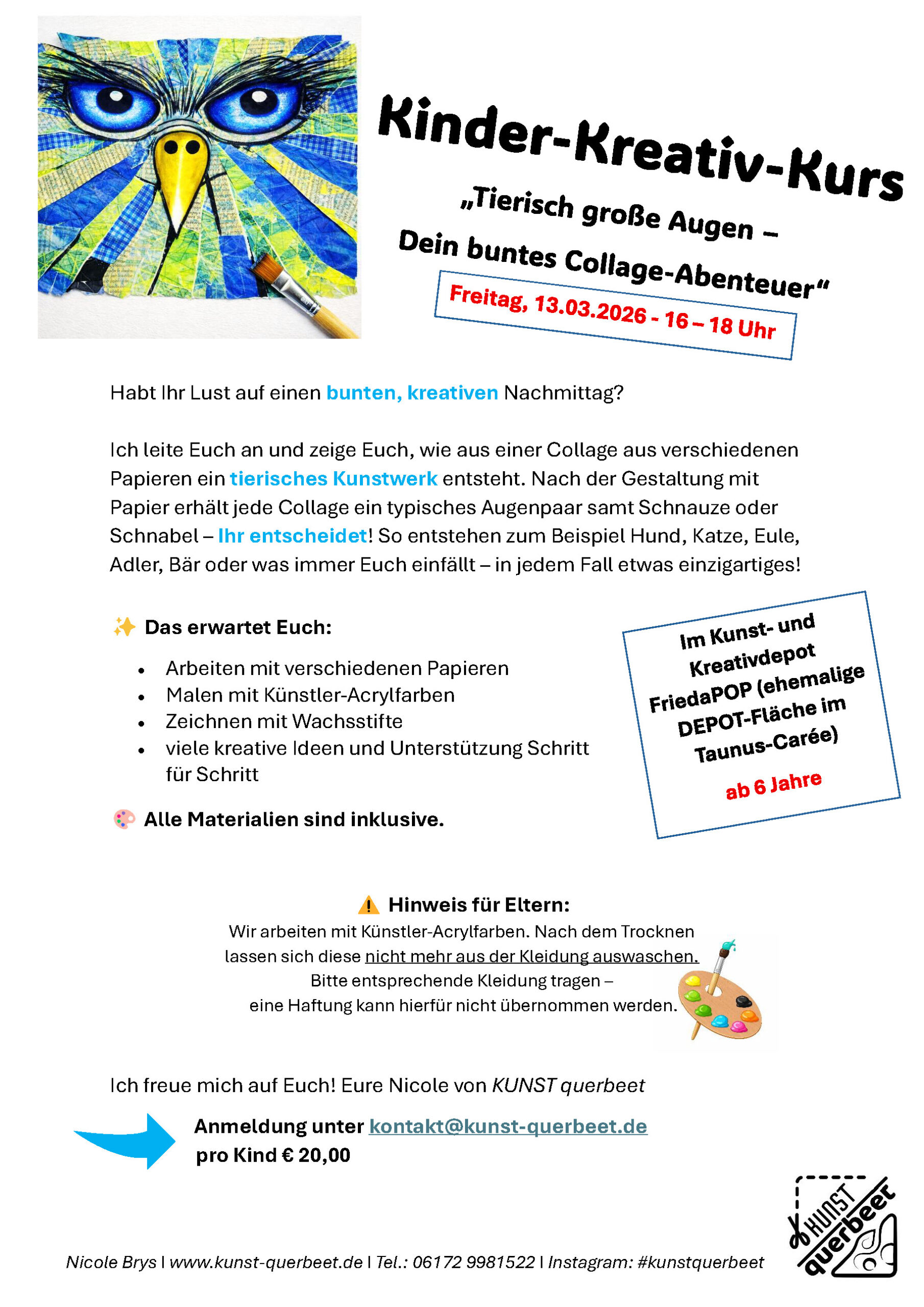 Kinder-Kreativ-Kurs Tierisch große Augen – Dein buntes Collage-Abenteuer ab 6 ...