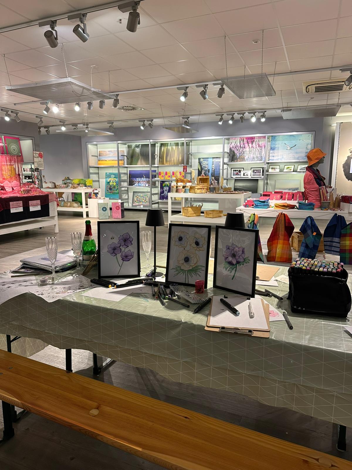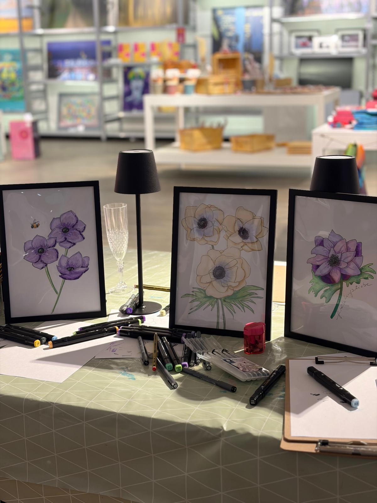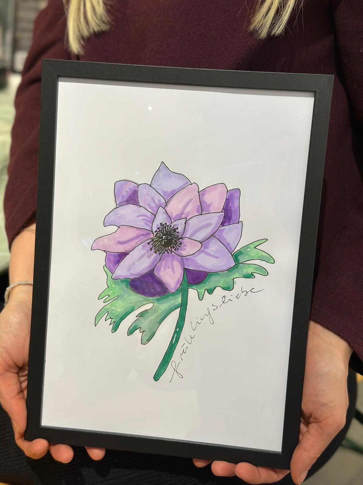 Zarte Linien, frische Farben, ein Glas Sekt und viel kreative Energie. In entspannter Atmosphäre entstanden unter der Anleitung von Florence wunderschöne florale Kompositionen. Zwei Stunden lang wurde gezeichnet, ausprobiert, gelacht und der Alltag einfach einmal ausgeblendet.