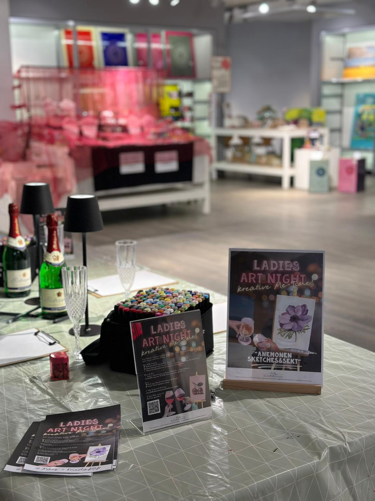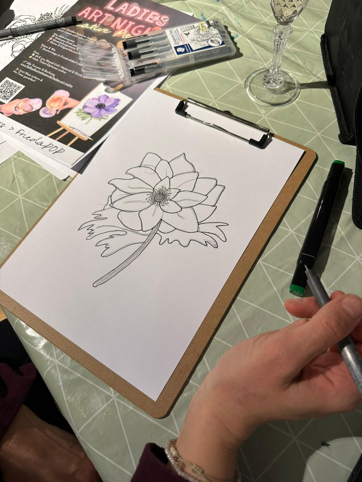 Gestern Abend fand im FriedaPoP im Taunus Carré in Friedrichsdorf der erste Workshop überhaupt statt. Die Ladies Art Night „Anemone Sketches & Sekt“.