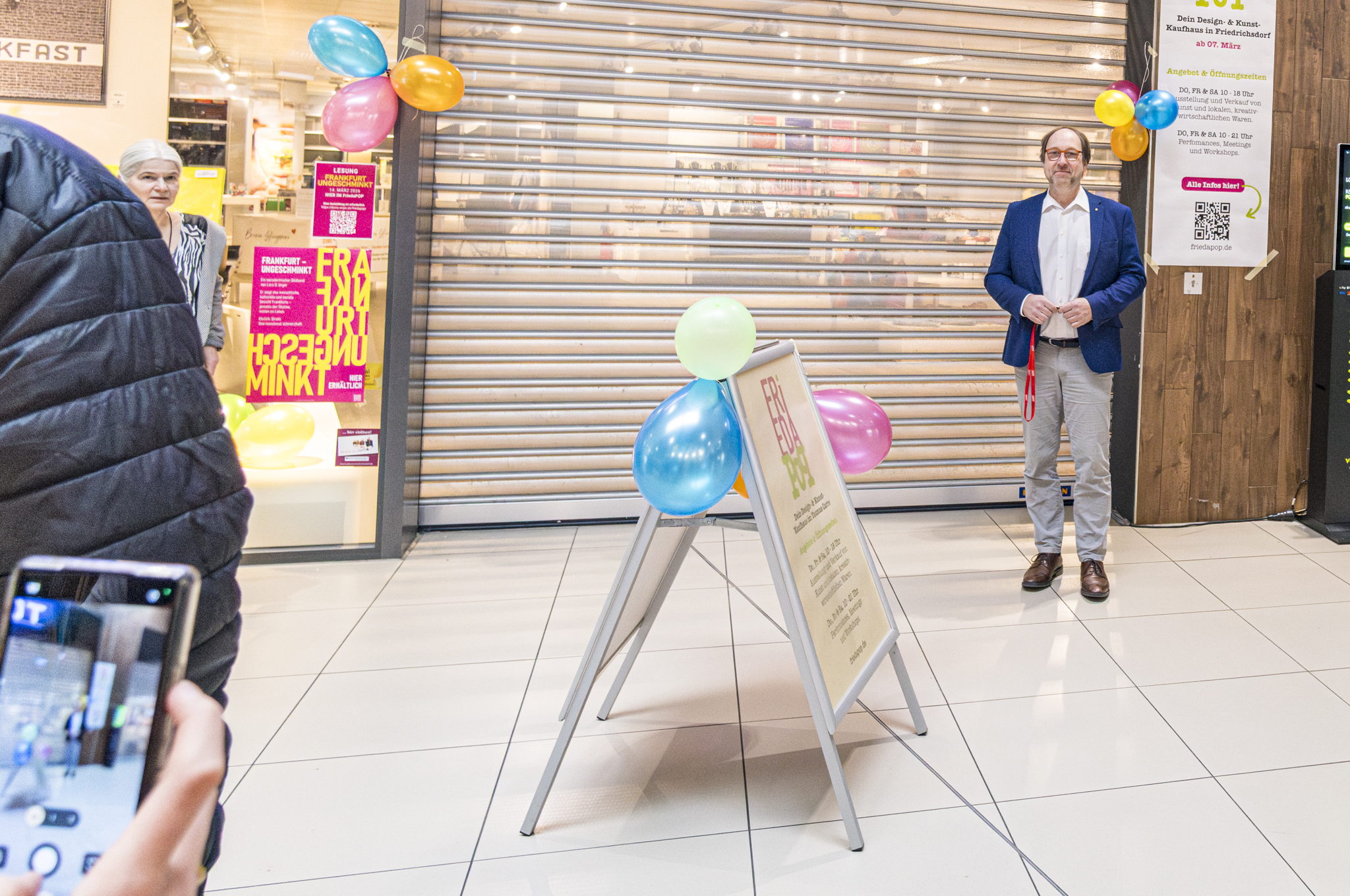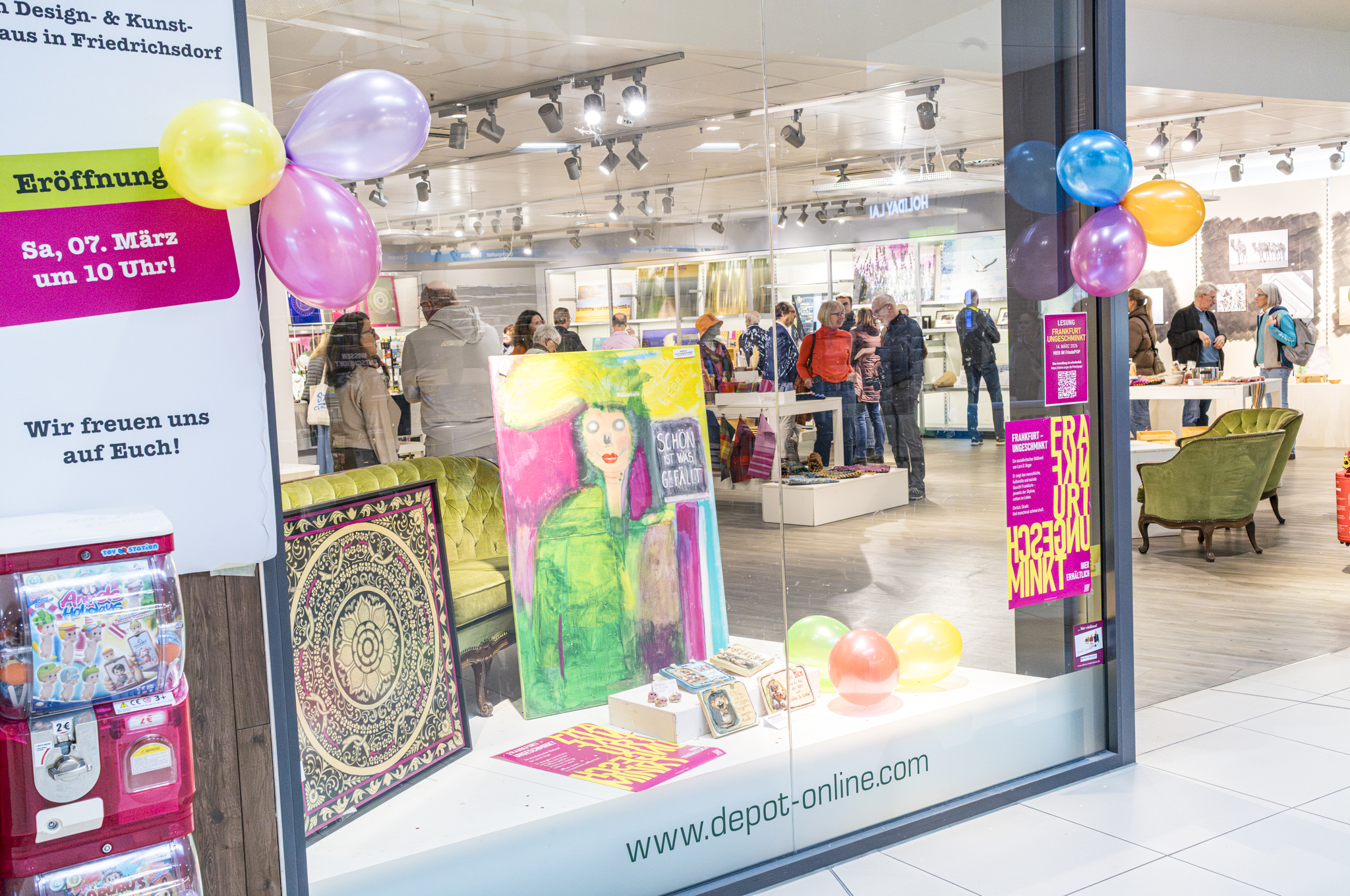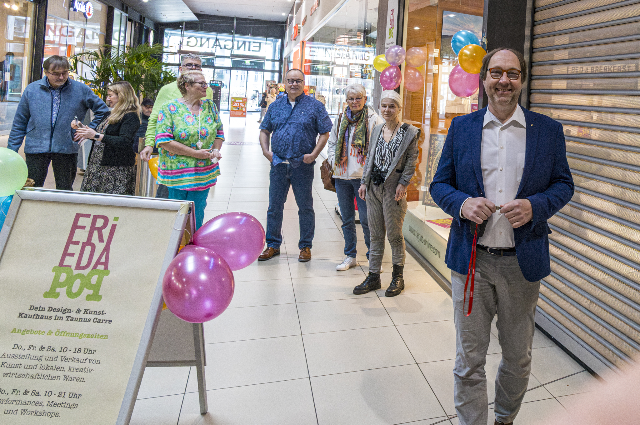 Friedrichsdorf – Punkt 10:00 Uhr eröffnete Bürgermeister Lars Keitel am Samstag im Taunus Carré in Friedrichsdorf offiziell das neue Kunst- und Design-Kaufhaus FriedaPOP. In den ehemaligen Räumen des DEPOT ist innerhalb von nur drei Wochen ein Pop-Up-Store entstanden, der Kunst, Design und handwerkliche Arbeiten unterschiedlichster Kreativer zusammenführt.